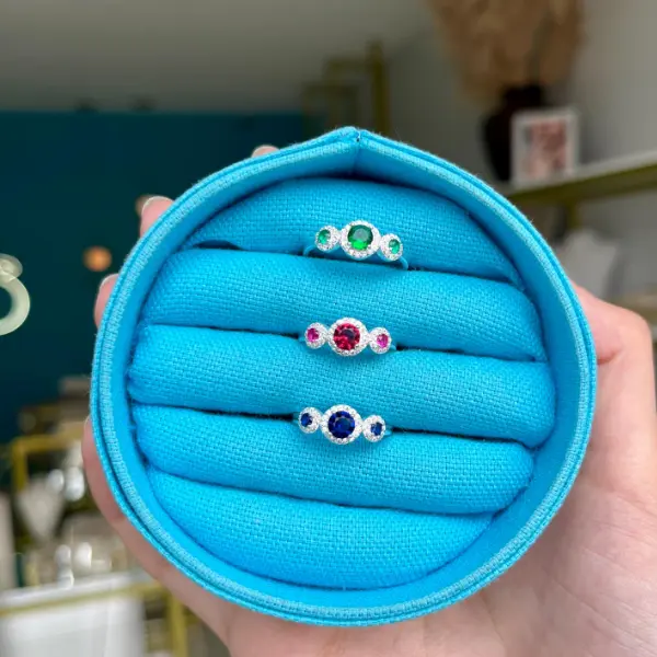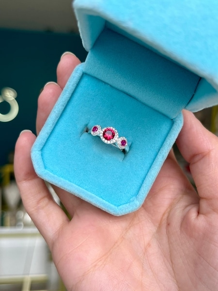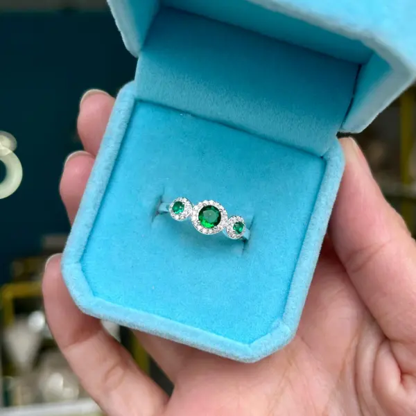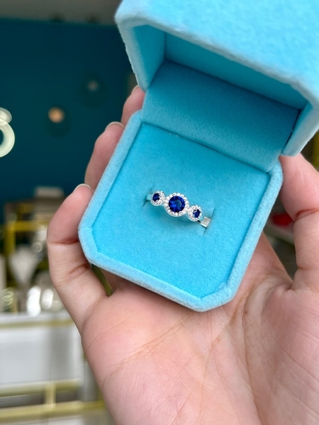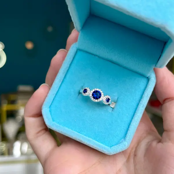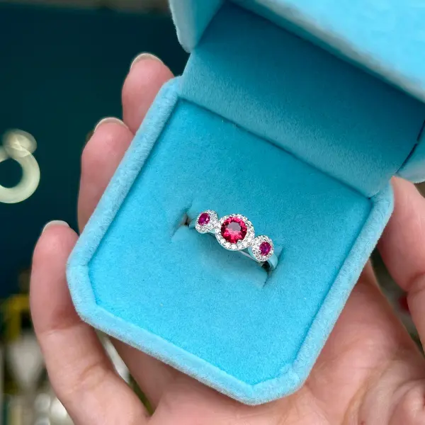 Anel de prata 925 cravejado com 3 cristais e zircônias. Uma joia cheia de elegância e sofisticação.