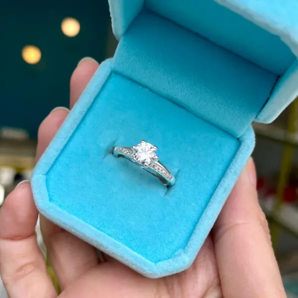 Anel todo na prata 925 e com um cristal em destaque como ponto central da joia, o anel solitário é frequentemente utilizado em pedidos de noivado, simbolizando amor, compromisso e a singularidade do sentimento. Este anel contém pedras menores cravejadas na parte lateral do aro.