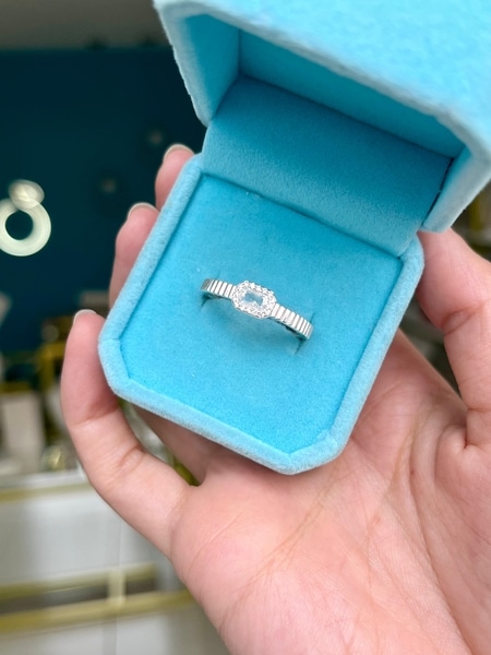 Anel todo na prata 925, com pedra retangular e cravejado com zircônias. Uma joia que traz estilo e modernidade ao look.