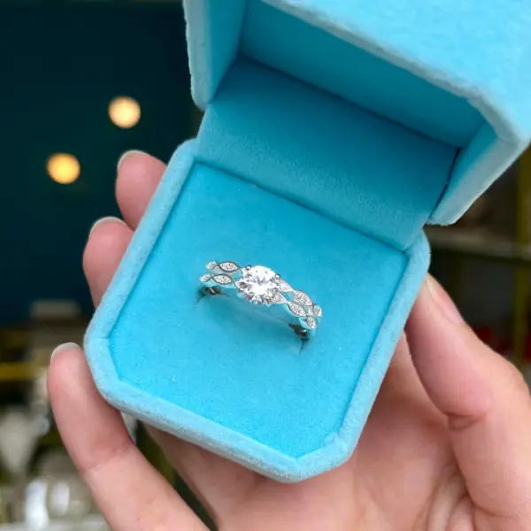 Anel Solitário Duplo Navete Cravejado