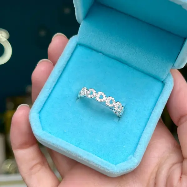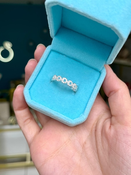 Anel de prata 925 com o aro todo em formato de coração e alguns detalhes cravejados com zircônias. Uma joia perfeita para te acompanhar em várias ocasiões.