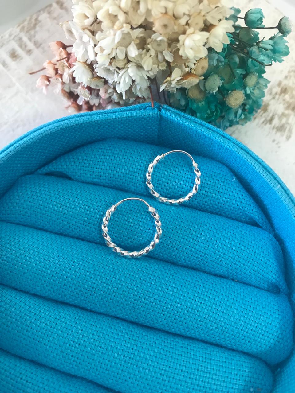 Argola fio trançado toda na prata 925, tamanho P. Argola de encaixe.