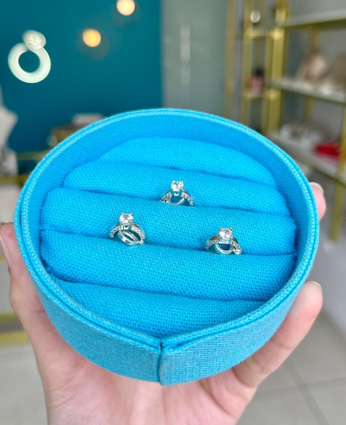 Berloque anel solitário todo na prata 925 e cravejado com zircônias.