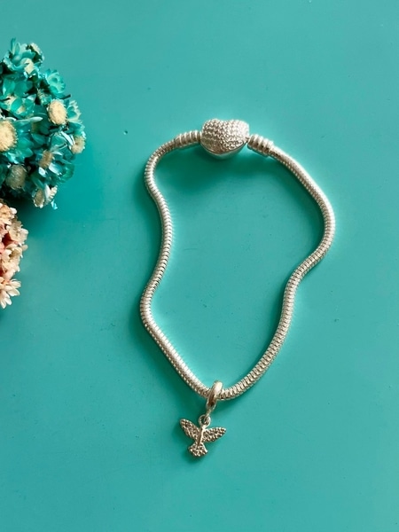 Berloque Espiríto Santo todo na prata 925 e cravejado com micro zircônias.