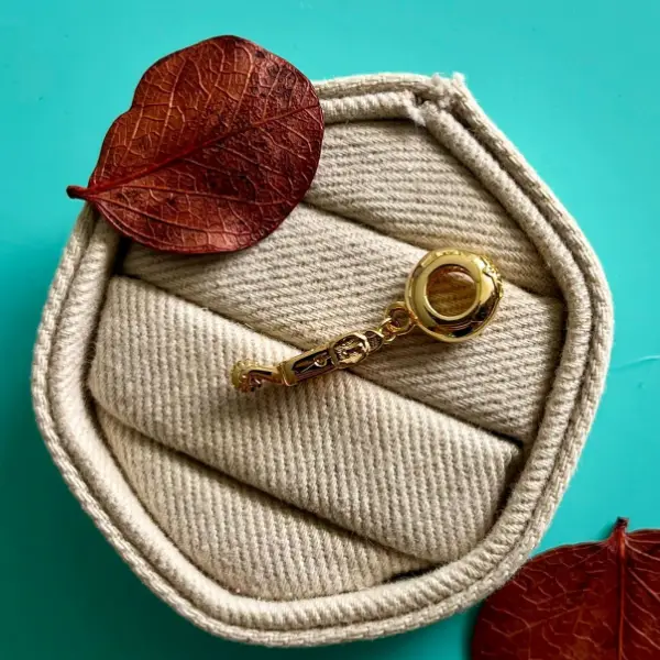 Metal nobre banhado em ouro 18k, garantindo brilho e durabilidade.