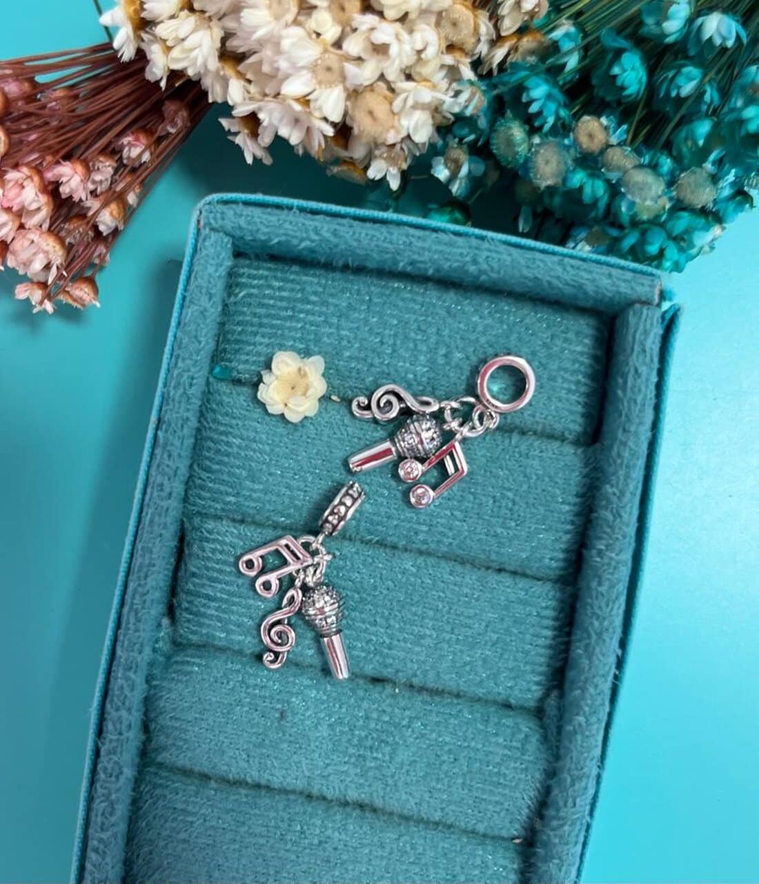 Berloque música todo na prata 925, esse berloque vem com 3 pingentes.