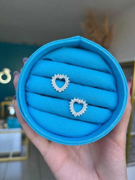 Brinco em formato de coração cravejado com zircônias e todo na prata 925.