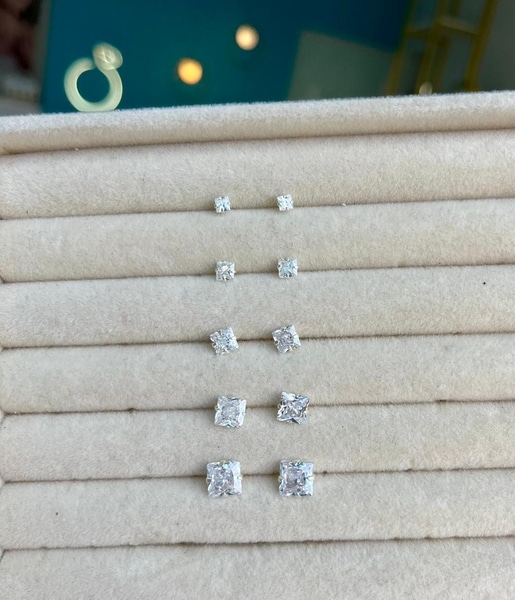 Brinco ponto de luz com cristal quadrado e todo na prata 925.