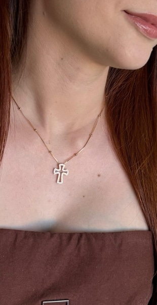 Colar Semijoia de bolinhas com pingente de cruz cravejado com zircônias. Esse colar tem 40 cm + 5 cm de extensor. As semijoias possuem garantia de 1 ano em sua cor.