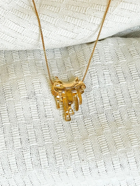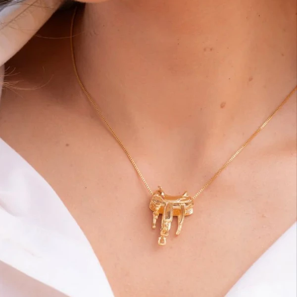 Colar Sela de Cavalo para quem ama o campo e o universo equestre. Um toque de originalidade que destaca sua liberdade e tradição, com delicadeza e brilho.