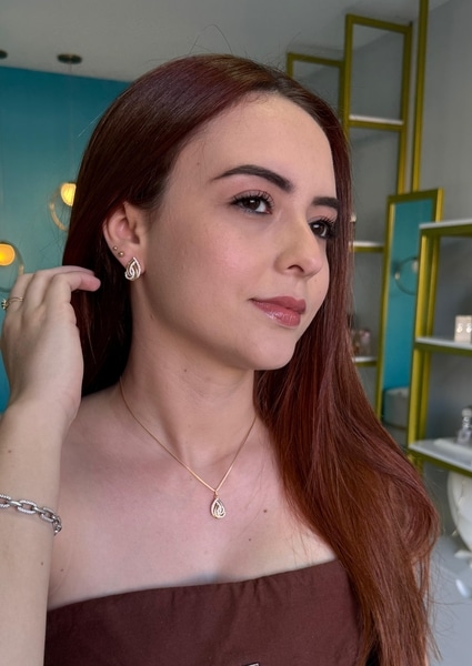 Conjunto colar e brinco, trata-se de um colar de corrente fina com um pingente em formato de gota, adornado com pequenas zircônias. Os brincos são do tipo gota, combinando com o design do pingente do colar e também decorados com zircônias. O estilo é clássico e elegante, adequado para diversas ocasiões. As semijoias possuem garantia de 1 ano em sua cor.