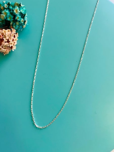 Corrente toda na prata 925. Este tipo de corrente é caracterizado por ter elos retangulares ou oblongos, que podem ser mais planos ou mais arredondados, e são interligados de forma a criar uma corrente flexível e com um visual distinto. É um desing comum em joias de prata e outros metais.