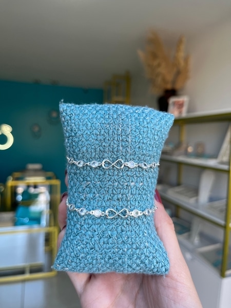 Pulseira com cristais e símbolo do infinito toda na prata 925, uma pulseira perfeita para compor seus looks.