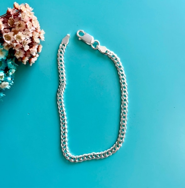 Pulseira toda na prata 925, os elos são duplos, o que confere ainda mais volume e presença a peça. A pulseira tem 21 cm.