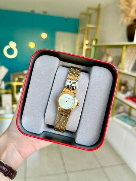 Seu design totalmente dourado tanto na caixa quanto na pulseira metálica sólida valoriza o visual feminino e sofisticado, sendo perfeito para ocasiões especiais ou para elevar o estilo do dia a dia.