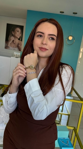 Relógio clássico pequeno, com mostrador espelhado e aplicações de cristais na caixa. Tem pulseira sólida de aço estilo corrente com fecho joalheria oferecendo ótimo ajuste. O acessório perfeito para compor looks sofisticados, ideal para pulsos finos e médios. Esse relógio possui a caixa com 2,2 cm de tamanho.