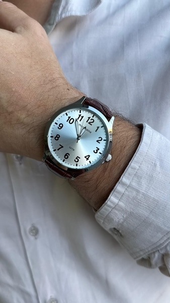 Com estilo social, este relógio analógico possui caixa em metal cromada, mostrador com numeração completa, o que facilita a visualização das horas. Pulseira em material sintético marrom com textura croco e fechamento por fivela, oferecendo um melhor ajuste ao pulso. Esse relógio possui a caixa em 4,6 cm de tamanho.